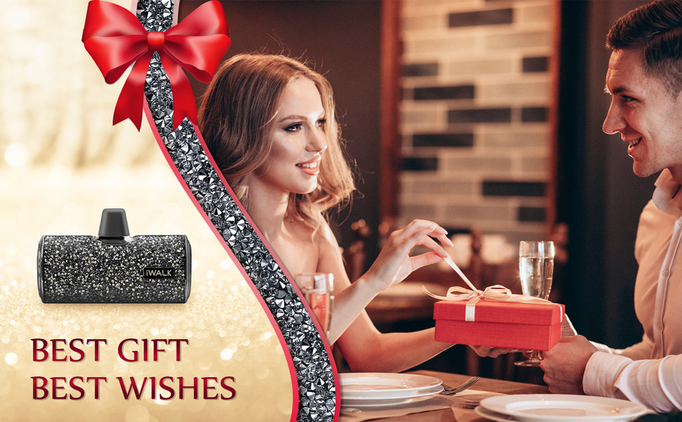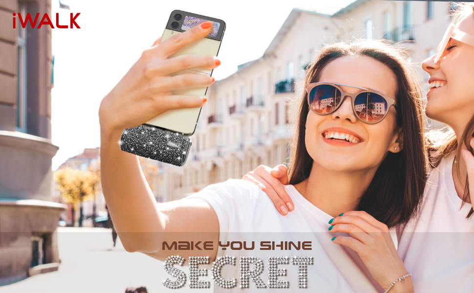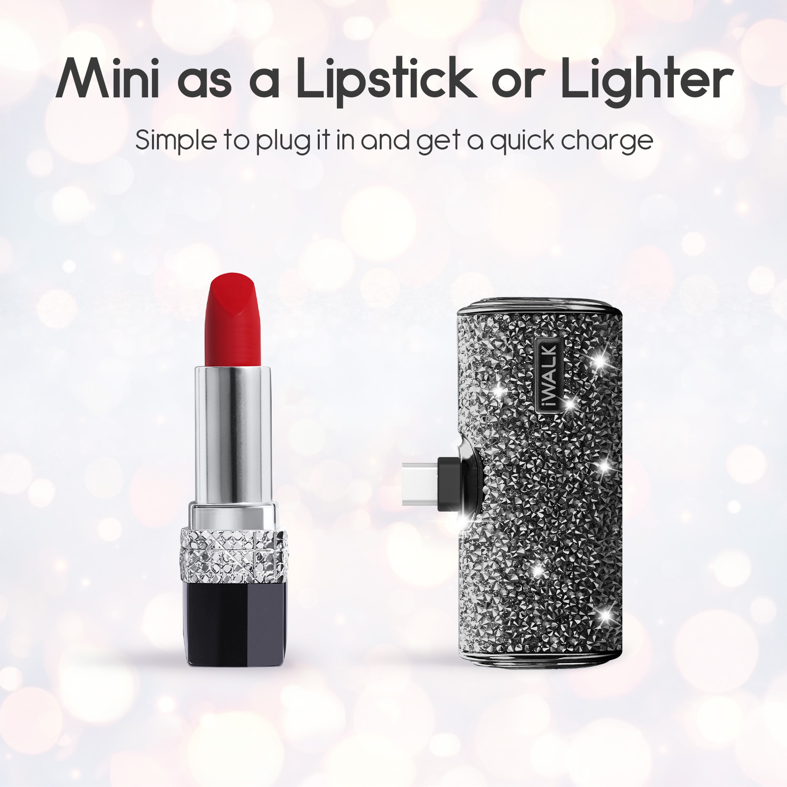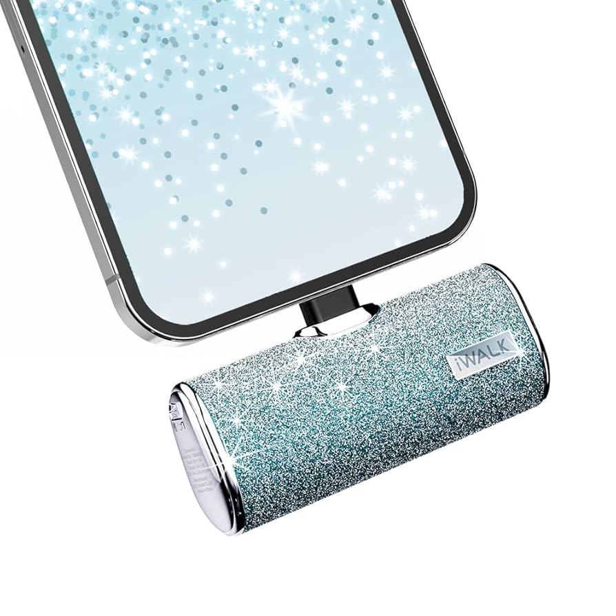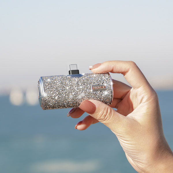 Cáp Bộ Sạc Dự Phòng Lấp Lánh iWALK – 4500mAh, 2 Cổng Lightning & USB-C, Đính Đá Sang Trọng, Nhỏ Gọn Như Thỏi Son